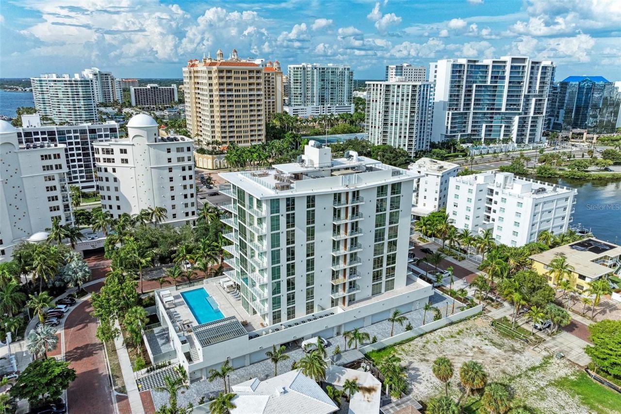 One or more photo(s) has been virtually staged. Step into Unit 402 at The Evolution, a luxurious condo nestled in the Golden Gate Point neighborhood in the heart of Sarasota. This fourth-floor residence spans 2,314 square feet of refined living space, offering 3 bedrooms, 3 bathrooms and a 2-car garage. The spacious open-concept living area presents breathtaking bay views and high-end upgrades, including Italcraft custom cabinetry, a full lighting package, and floor-to-ceiling impact-resistant w...One or more photo(s) has been virtually staged. Step into Unit 402 at The Evolution, a luxurious condo nestled in the Golden Gate Point neighborhood in the heart of Sarasota. This fourth-floor residence spans 2,314 square feet of refined living space, offering 3 bedrooms, 3 bathrooms and a 2-car garage. The spacious open-concept living area presents breathtaking bay views and high-end upgrades, including Italcraft custom cabinetry, a full lighting package, and floor-to-ceiling impact-resistant windows for a seamless blend of elegance and resilience. This modern two-tone kitchen is perfect for both everyday living and entertaining, providing all the essentials for crafting culinary masterpieces. Outfitted with premium Sub-Zero and Wolf appliances, meal preparation becomes an enjoyable experience, while the induction cooktop ensures precise, energy-efficient cooking. The kitchen's aesthetic is further enhanced by a sleek quartz backsplash and a quartz waterfall island, which serves as a focal point for gatherings and casual dining. Just beyond, a spacious balcony with breathtaking views invites you to enjoy outdoor living and relaxation. The primary bedroom offers a serene retreat, a luxurious bathroom featuring custom cabinetry, and shower, and a standalone bathtub with city views. The two additional bedrooms, one with an en-suite bath, are perfect for family or guests. Additional conveniences include an in-unit laundry room and generous storage space throughout. The Evolution, home to just 20 exclusive condos, offers incredible amenities. When it's time to unwind, head to the rooftop sunbathing deck with a covered outdoor kitchen and barbecue area - the perfect spot for entertaining with stunning 360 views of the downtown and the bay. The clubhouse offers a pool table, sauna, and meeting rooms, providing spaces for both relaxation and productivity. The private concierge service is always ready to assist, ensuring you have access to entertainment and convenience at your fingertips. Each residence comes with a two-car garage. Some of the additional features include a quick-charging station for electric cars, an on-site car wash, and a grooming studio for your pets. Experience the ultimate in luxury living at The Evolution, where upscale amenities and stunning views of downtown Sarasota and the bay await. Embrace the vibrant lifestyle that comes with living in this remarkable community, where every detail is designed to enhance your quality of life.