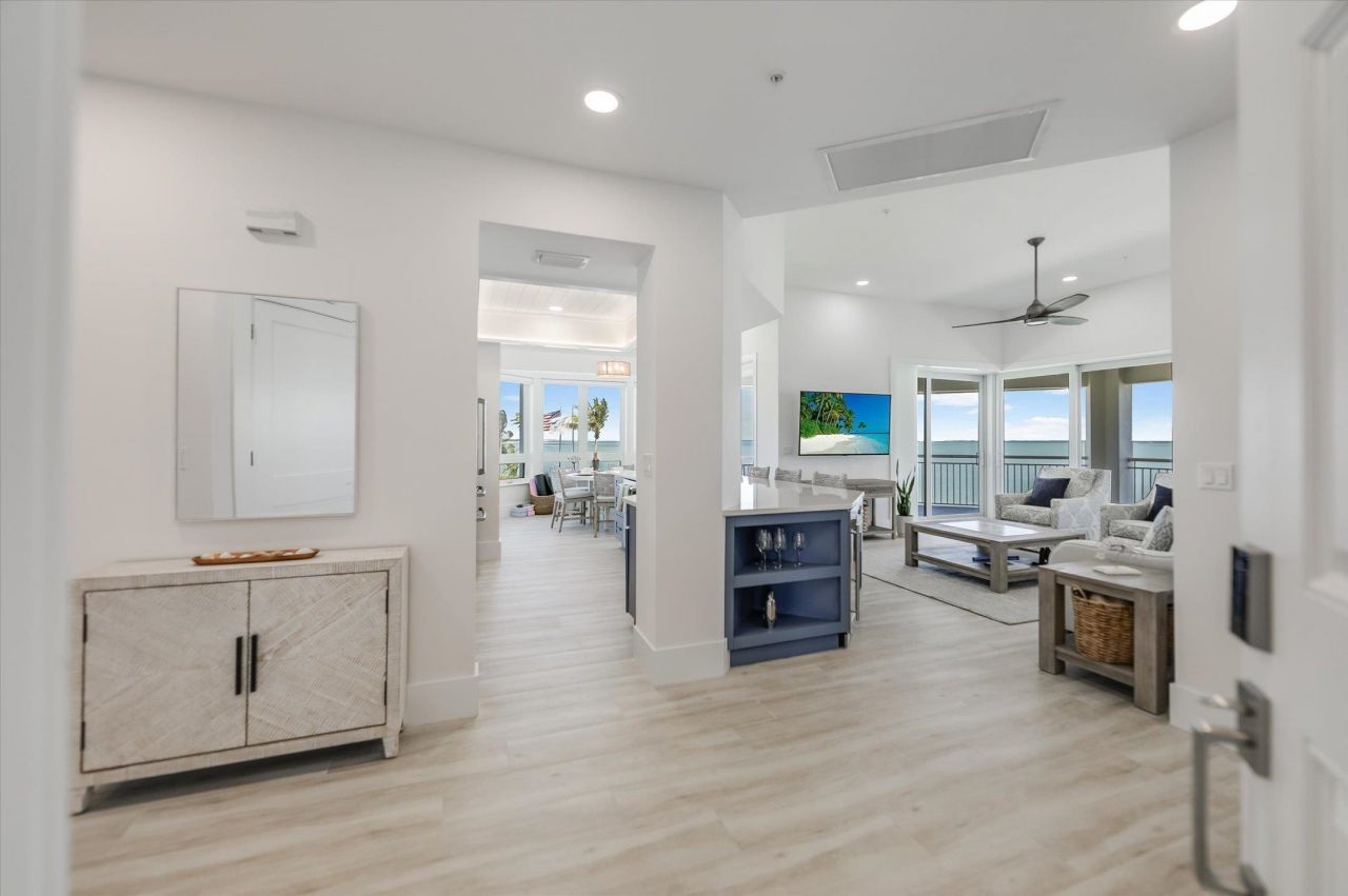 The island lifestyle you've been dreaming of awaits you at Seabreeze within the gated community of South Seas at the tip of Captiva Island. This is a rare opportunity to purchase a top floor, corner location boasting an inviting interior filled with sun-drenched natural light. Enjoy the sunny island breezes and expansive water views from the two spacious terraces with stunning sunrises in the morning and awe-inspiring sunsets in the evening. Truly an exclusive and private location with a tota...The island lifestyle you've been dreaming of awaits you at Seabreeze within the gated community of South Seas at the tip of Captiva Island. This is a rare opportunity to purchase a top floor, corner location boasting an inviting interior filled with sun-drenched natural light. Enjoy the sunny island breezes and expansive water views from the two spacious terraces with stunning sunrises in the morning and awe-inspiring sunsets in the evening. Truly an exclusive and private location with a total of 8 condominiums in the building. Recent interior improvements include new impact rated windows and sliding glass doors, wood plank tile flooring throughout, top of the line gorgeous custom cabinetry and modern quartz counters in the kitchen and bathrooms, an easy-feel breakfast bar, functional laundry center and storage area, soft window treatments, and professionally designed interior furnishings. This spacious three bedroom / three bath condominium has a breathtaking color palate of coastal blues, crisp whites and sandy neutrals. The primary bedroom overlooks the azure bay waters with access to the screened lanai and the primary bath has been redesigned with his and hers vanities along with a large walk-in shower. Guest suites and bathrooms have been thoughtfully created to offer a coastal experience comprised of golf course and water views. The association has recently installed new landscaping with tropical, flowering shrubs and lush palm trees, a weather- resistant standing seam metal roof, repainted the exterior of the building, refreshed the ground level owner storage closets and under building parking, created an area for socializing while you grill. This is the one of a kind vacation villa that you have been waiting for. Call for your private showing.