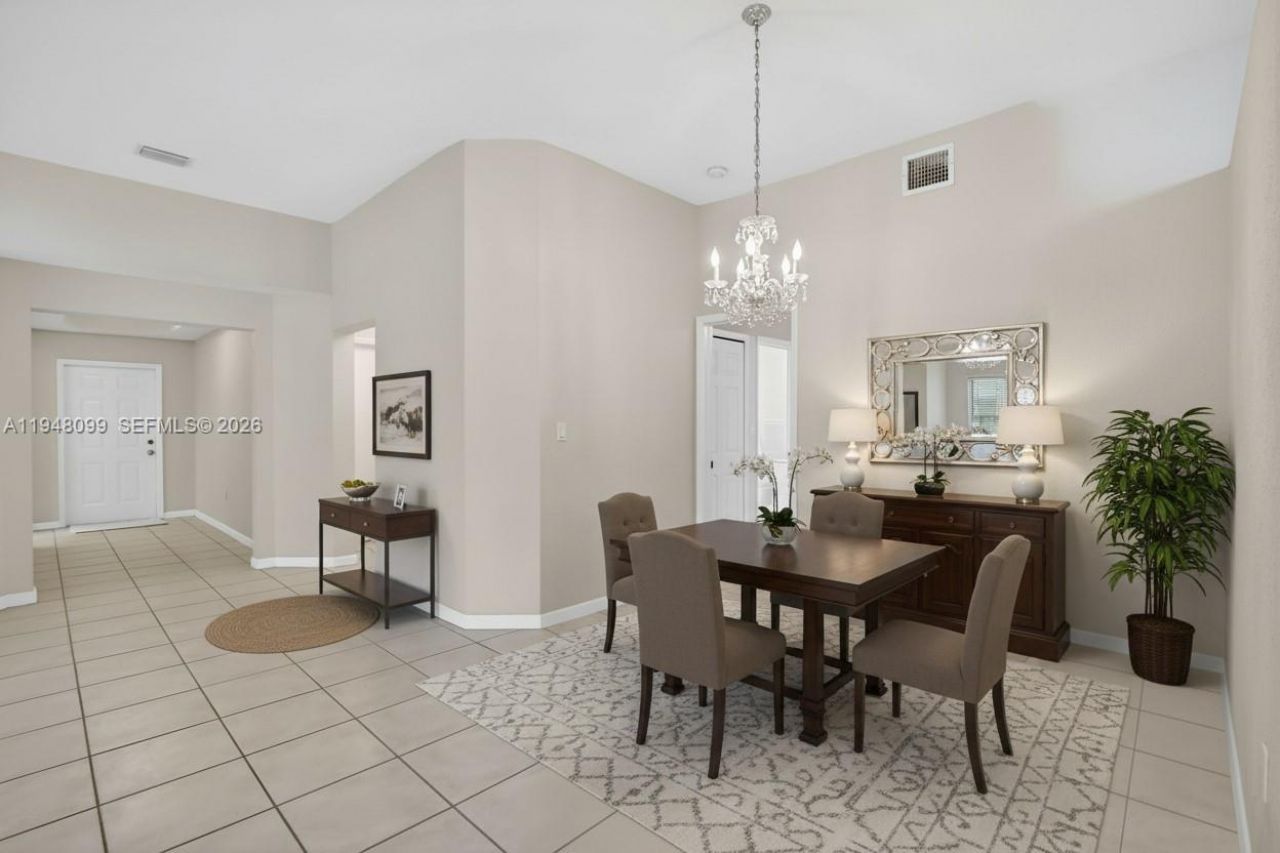 Located in the sought-after, guard-gated community of The Cove at Poinciana Parc, this 3-bedroom, 2.5-bath residence delivers a smart layout designed for everyday comfort and easy living. Built in 2000, the home welcomes you with a formal entry and front living space with a formal dining area, while the kitchen and family room anchor the heart of the home, ideal for gathering and entertaining. A split-bedroom design offers privacy, highlighted by a spacious primary suite with walk-in closets and...Located in the sought-after, guard-gated community of The Cove at Poinciana Parc, this 3-bedroom, 2.5-bath residence delivers a smart layout designed for everyday comfort and easy living. Built in 2000, the home welcomes you with a formal entry and front living space with a formal dining area, while the kitchen and family room anchor the heart of the home, ideal for gathering and entertaining. A split-bedroom design offers privacy, highlighted by a spacious primary suite with walk-in closets and a well-appointed bath featuring a soaking tub and separate walk-in shower. Tile flooring flows through the main living areas, complemented by new carpet in the bedrooms. Step outside to a private patio and fully fenced yard. Additional features include a stamped concrete driveway, 2-car garage, accordion hurricane shutters, and a 2020 roof. Low HOA covers front and side lawn care, providing low-maintenance living in a desirable Davie location.