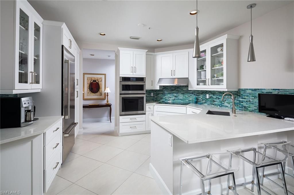 This beautifully renovated end residence in Colonade at Park Shore offers a premier lakefront setting near the community clubhouse and pool. The open-concept kitchen features quartz countertops, white cabinetry with glass inlays, and stainless-steel appliances. The primary suite includes an elegant bathroom with a designer tile and lighting package. Additional upgrades include a newer roof, some impact-resistant windows (excluding mitered glass windows), new shaker-style interior doors, and reno...This beautifully renovated end residence in Colonade at Park Shore offers a premier lakefront setting near the community clubhouse and pool. The open-concept kitchen features quartz countertops, white cabinetry with glass inlays, and stainless-steel appliances. The primary suite includes an elegant bathroom with a designer tile and lighting package. Additional upgrades include a newer roof, some impact-resistant windows (excluding mitered glass windows), new shaker-style interior doors, and renovated baths. The home showcases white 48-by-24-inch porcelain tile flooring, 8-inch baseboards, and plantation shutters throughout. The flexible third bedroom can serve as an office or media room. A screened lanai overlooks the lake and water fountain, creating a tranquil outdoor living space. Colonade residents enjoy a gated community with a renovated clubhouse, fitness center, pool, spa, and convenient access to Venetian Village and the private Park Shore beach and berm path.