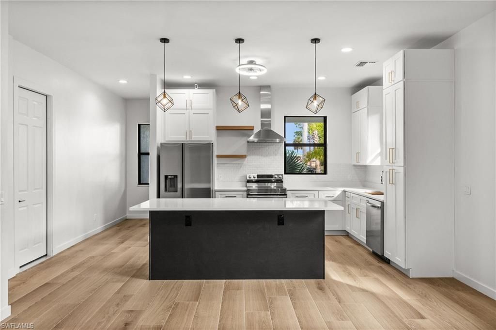 New construction in the heart of Fort Myers! This thoughtfully designed home offers 3 bedrooms, 2.5 baths, over 1,700 square feet under air, and a 2-car garage. From the moment you enter, you'll appreciate the quality craftsmanship and attention to detail, highlighted by wood-look tile flooring, soaring 10-foot ceilings, and a bright, open layout filled with natural light. The kitchen is both stylish and functional, perfect for everyday living and entertaining alike, featuring quartz countertops...New construction in the heart of Fort Myers! This thoughtfully designed home offers 3 bedrooms, 2.5 baths, over 1,700 square feet under air, and a 2-car garage. From the moment you enter, you'll appreciate the quality craftsmanship and attention to detail, highlighted by wood-look tile flooring, soaring 10-foot ceilings, and a bright, open layout filled with natural light. The kitchen is both stylish and functional, perfect for everyday living and entertaining alike, featuring quartz countertops, a large prep island, Samsung stainless steel appliances, tile backsplash, floating shelves, and striking pendant lighting. The spacious primary suite includes private lanai access and an elegant en-suite bath with a glass-enclosed shower, dual vanities, and a walk-in closet. Additional highlights include impact-resistant windows and doors, Flood Zone X (no flood insurance required), and no HOA fees, offering peace of mind and financial flexibility. Ideally located just minutes from the Historic River District of downtown Fort Myers and the iconic Ford & Edison Winter Estates, with easy access to dining, shopping, culture, and entertainment. 1916 Jefferson Avenue delivers modern construction, quality finishes, and a prime central location. This is an exceptional opportunity to own new in Fort Myers.