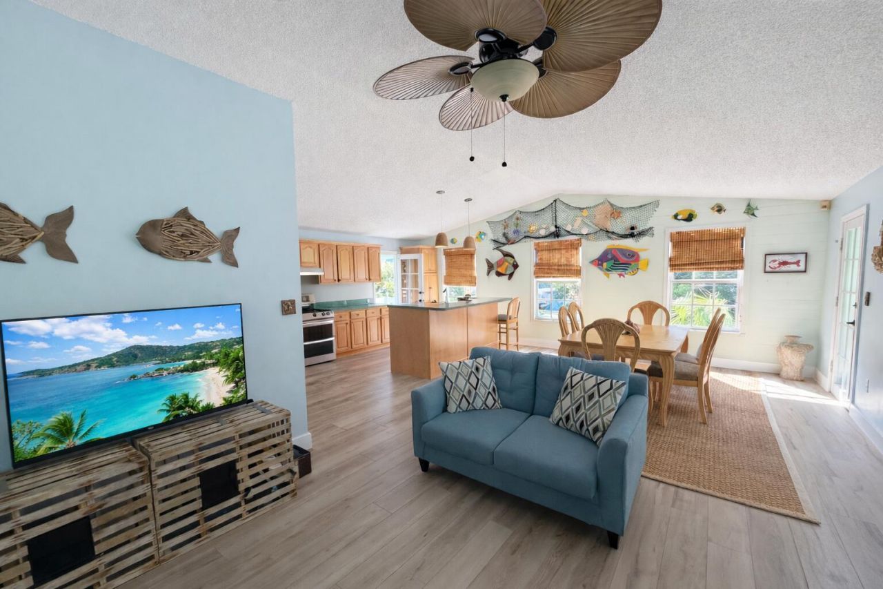 Beautiful stilt home for rent in the heart of Key Largo, located in the highly sought-after Bay Haven community at Mile Marker 99.5. This private and serene property offers 3 bedrooms and 2 bathrooms upstairs, surrounded by mature landscaping and tranquil natural views. A private outdoor shower off the primary bedroom and multiple balconies create the perfect setting to enjoy the Keys lifestyle. Enjoy access to the expansive rooftop deck, ideal for evening cocktails while taking in breathtaking ...Beautiful stilt home for rent in the heart of Key Largo, located in the highly sought-after Bay Haven community at Mile Marker 99.5. This private and serene property offers 3 bedrooms and 2 bathrooms upstairs, surrounded by mature landscaping and tranquil natural views. A private outdoor shower off the primary bedroom and multiple balconies create the perfect setting to enjoy the Keys lifestyle. Enjoy access to the expansive rooftop deck, ideal for evening cocktails while taking in breathtaking Florida Bay sunsets.Welcome to Dolphin Lookout! This exceptional designer home features a spectacular rooftop deck with 180 unobstructed Florida Bay views. Located in a wonderful neighborhood with a homeowners park, residents enjoy access to a private sandy beach and boat ramp. Tucked away in a peaceful, private setting, this one-of-a-kind home is filled with thoughtful details and unique craftsmanship throughout.The open-concept living space is bright and inviting, with balconies and a serene pond offering tranquil areas for relaxation. Multiple balconies are perfect for birdwatching, morning coffee, or sunset cocktails. One balcony features a private outdoor shower located off the primary bedroom. The primary and second bedrooms both have direct access to side balconies. The primary bedroom features a California king bed, offering comfort and space.Notable features include a custom wood staircase with hand-carved dolphin details, a metal roof, and four decks in total. The kitchen is equipped with solid maple wood cabinetry.The property is fully furnished, with all furnishings remaining for the duration of the rental. The home is fully gated for privacy and security and features a beautiful outdoor gazebo, perfect for relaxing or entertaining in a lush tropical setting.HOA annual dues for 2026 are $550, which include access to the homeowners park, private sandy beach, and boat ramp.